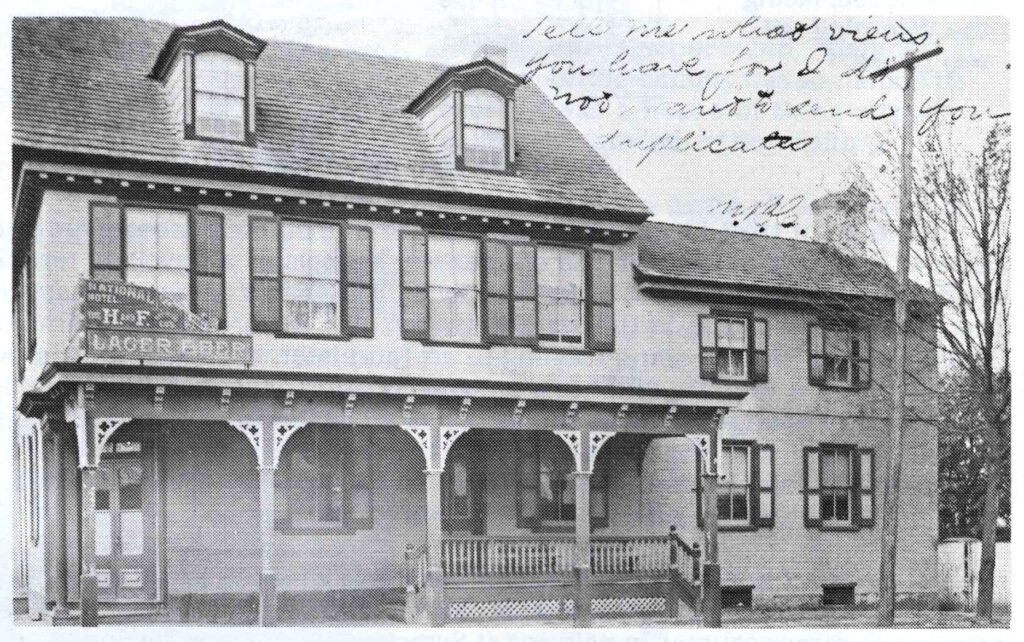 The National Hotel, a three-story building, was built by Daniel Mifflin probably in the late 1780s or 1790s. It served as a stagecoach stop for people going to Dover, Lewes, and points south. Sometime in the 1900s, it was converted to apartments with the south end converted to a grocery store and later used as a dental office. The hotel was sold to the town and was torn down in 1963.